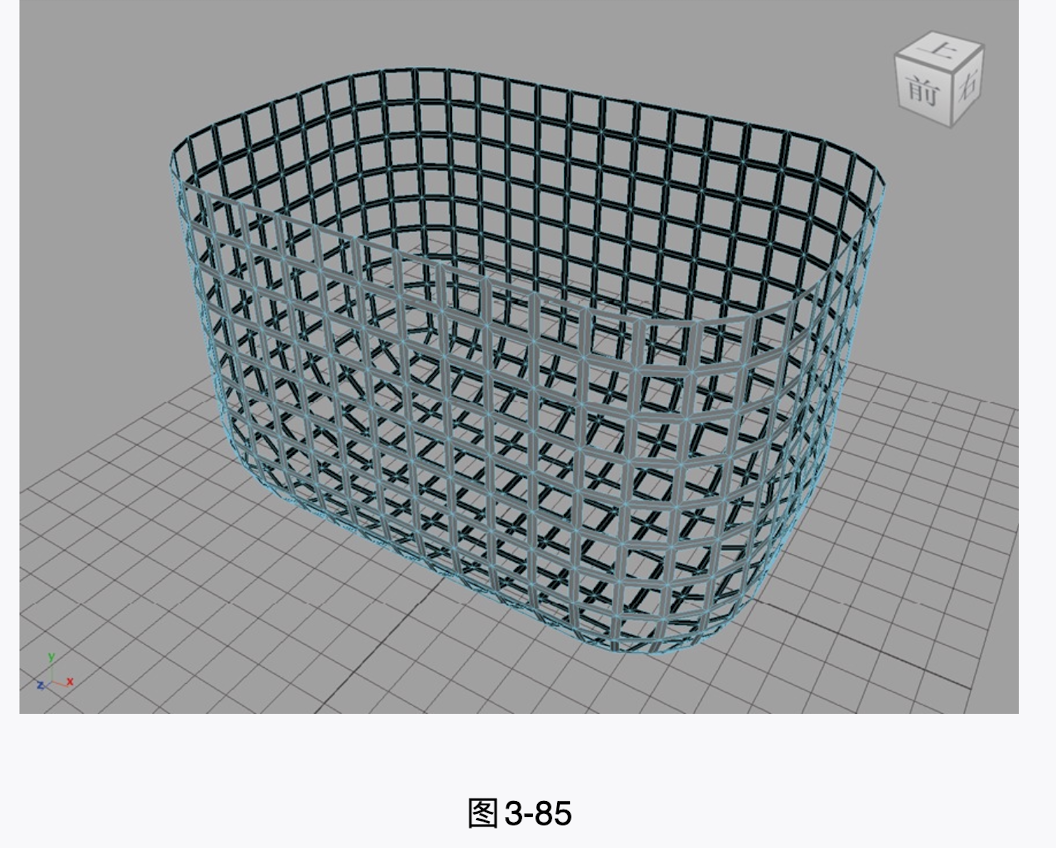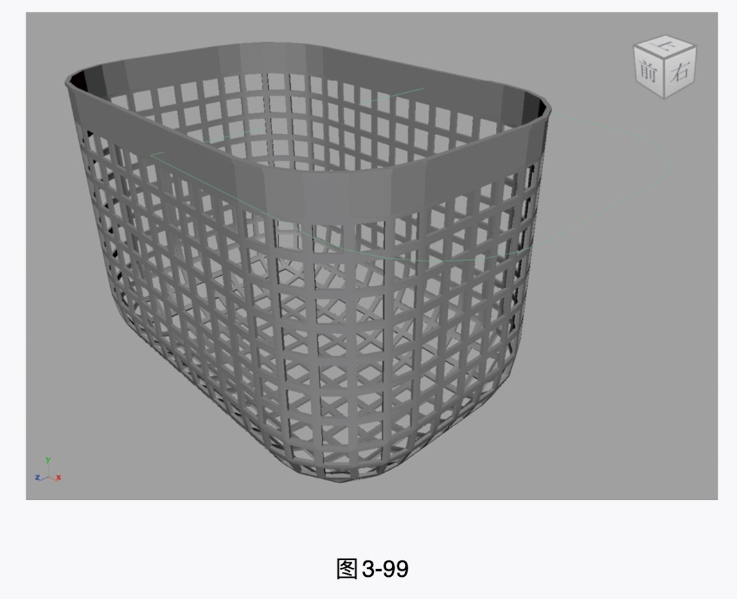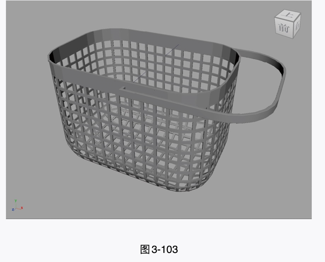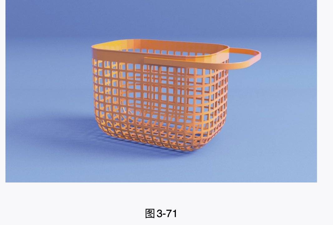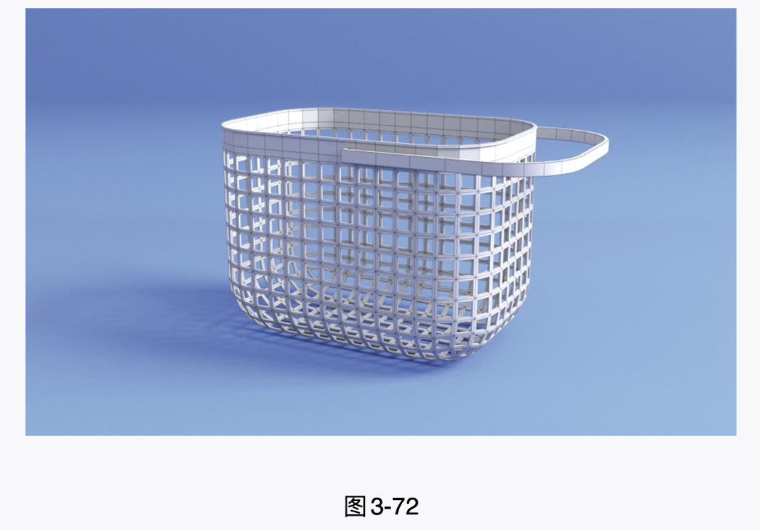 在本实例中,我们通过制作一个小筐模型来学习多边形建模技术,本实例的最终渲染效果如图3-71所示,线框渲染效果如图3-72所示。