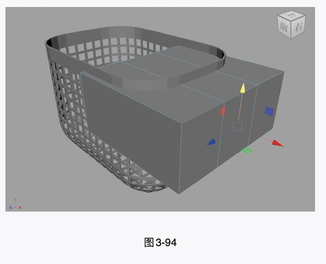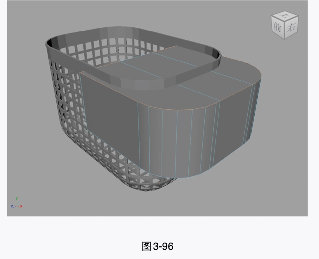 (10)选择图3-86所示的边,使用"挤出"工具制作出筐边的细节,如图3-87所示。