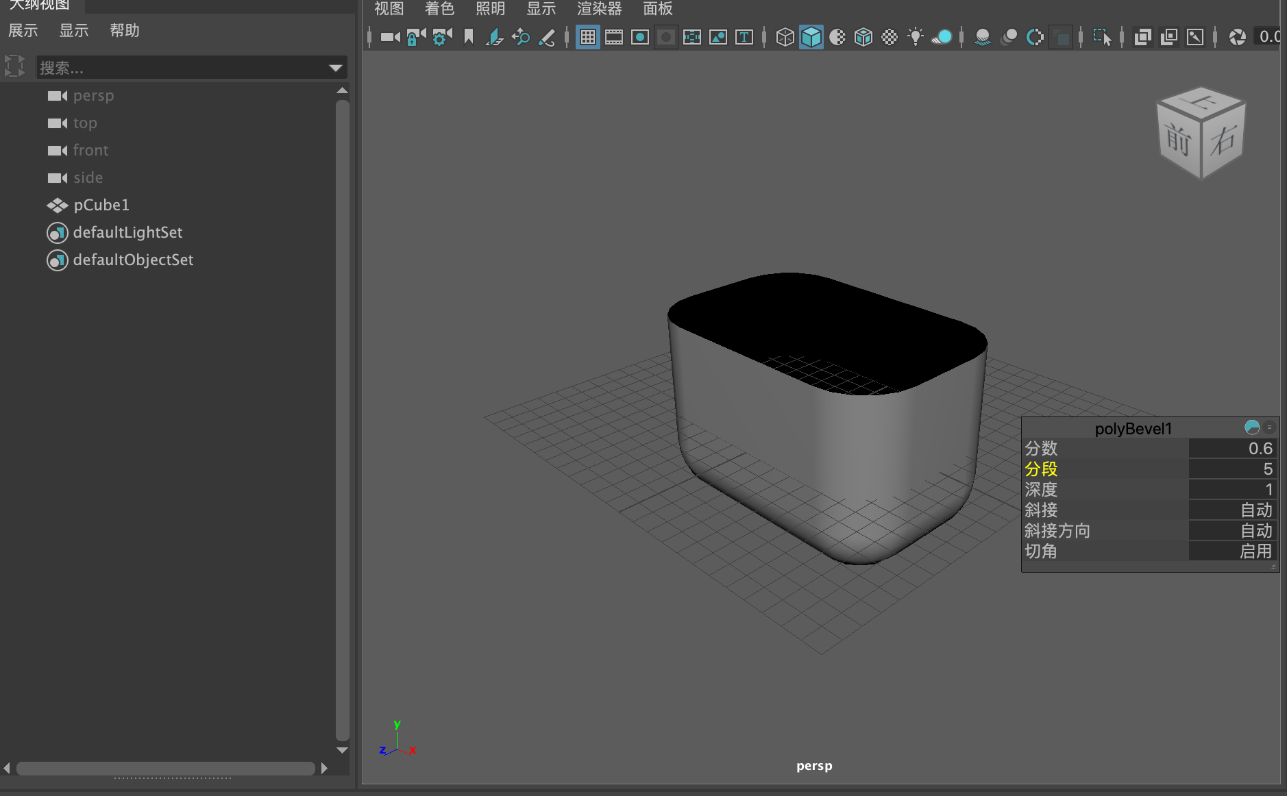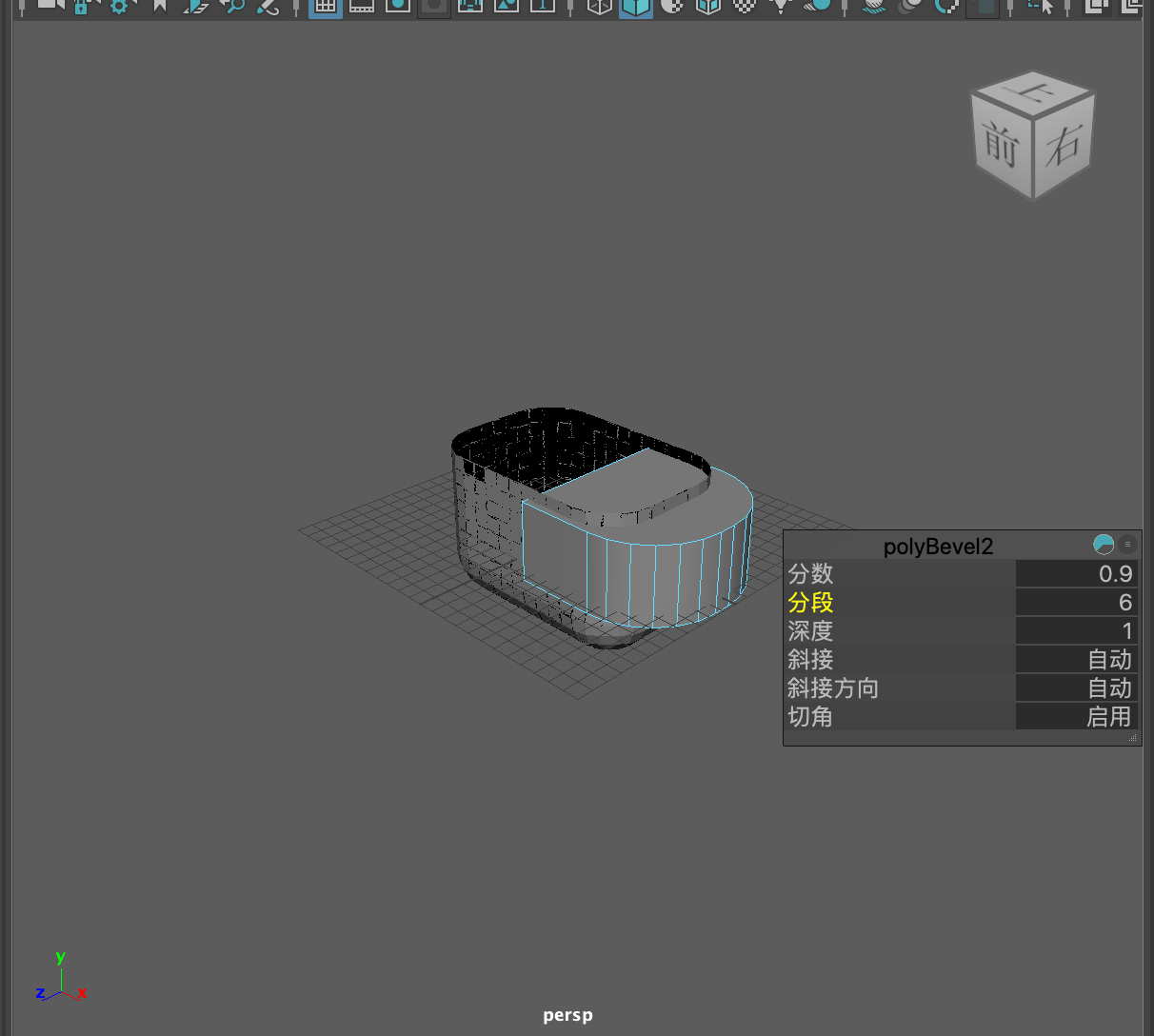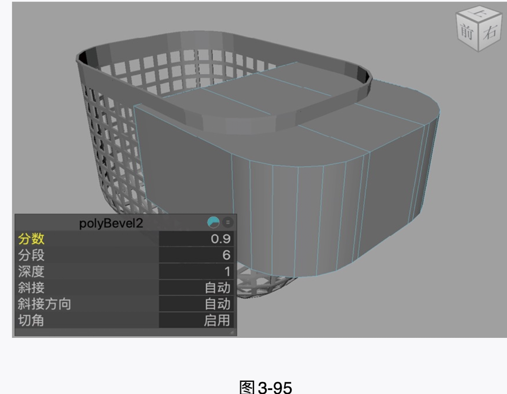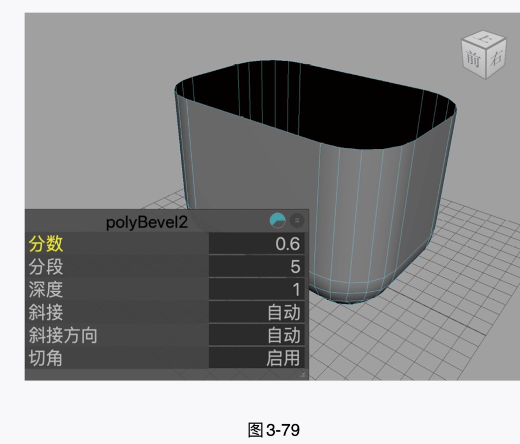 (5)选择模型上的所有边,单击"多边形建模"工具架上的"倒角组件"图标,制作出模型的倒角效果,如图3-79所示。