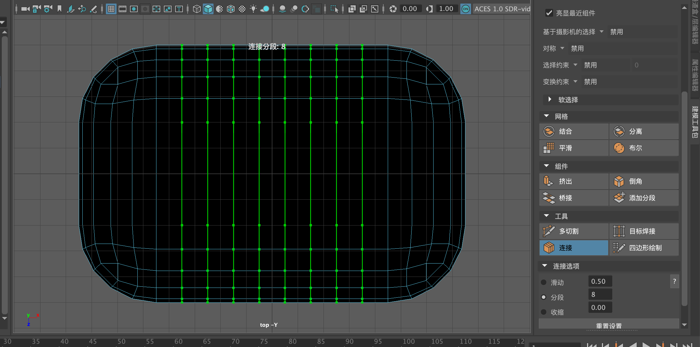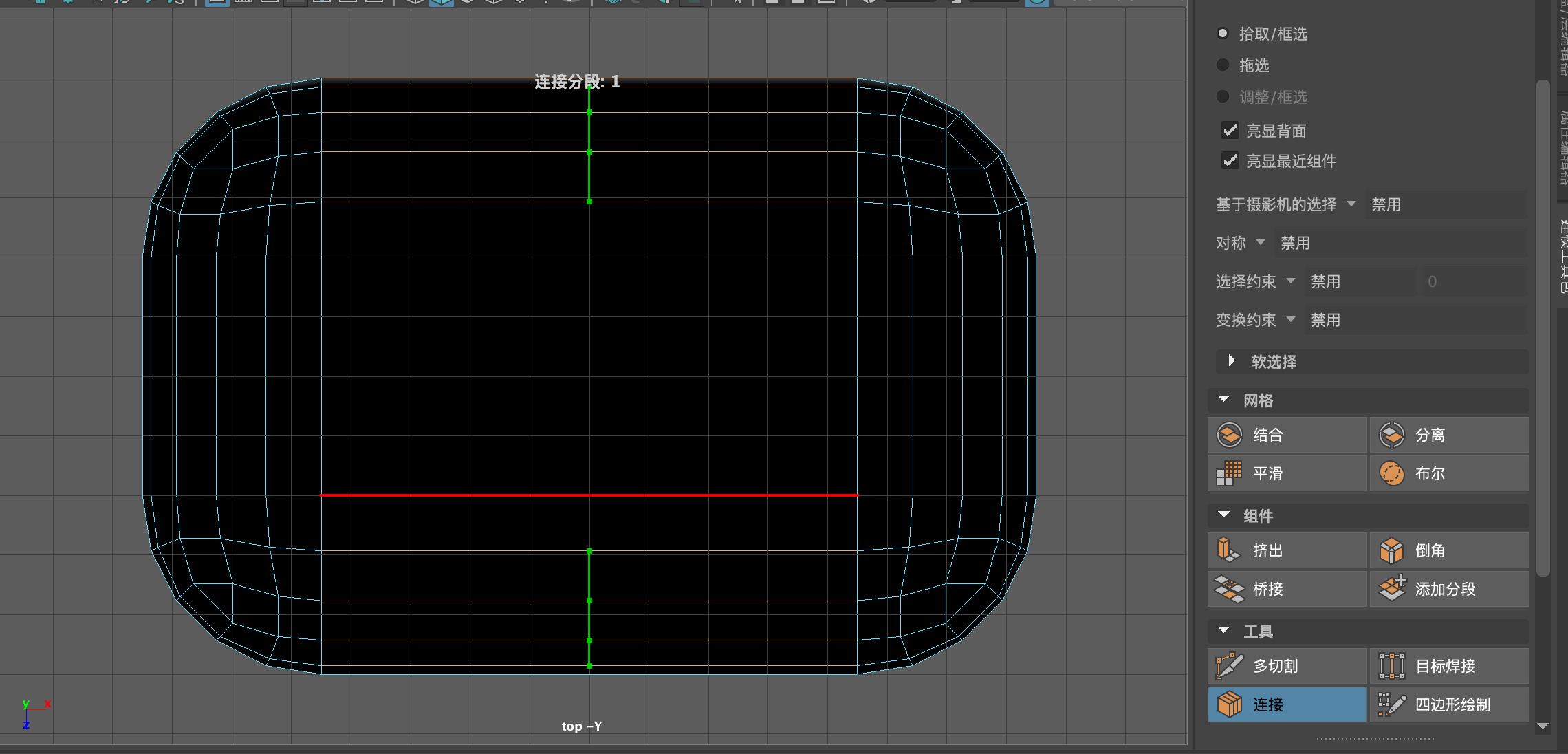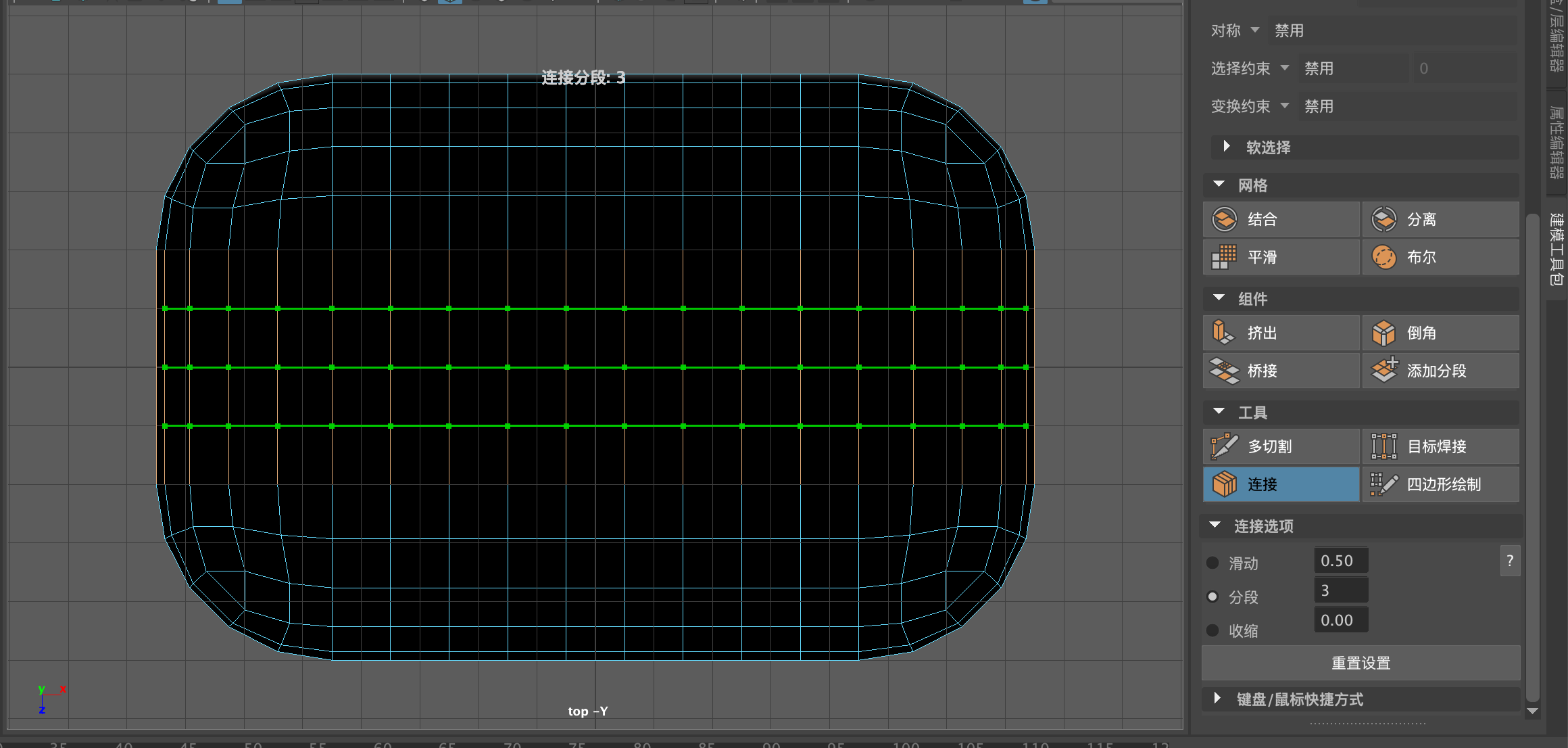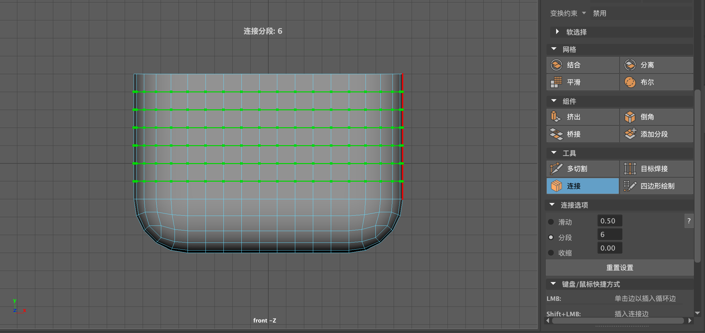 同理,先点连接,再点红色边,滑动为0.5,分段为6