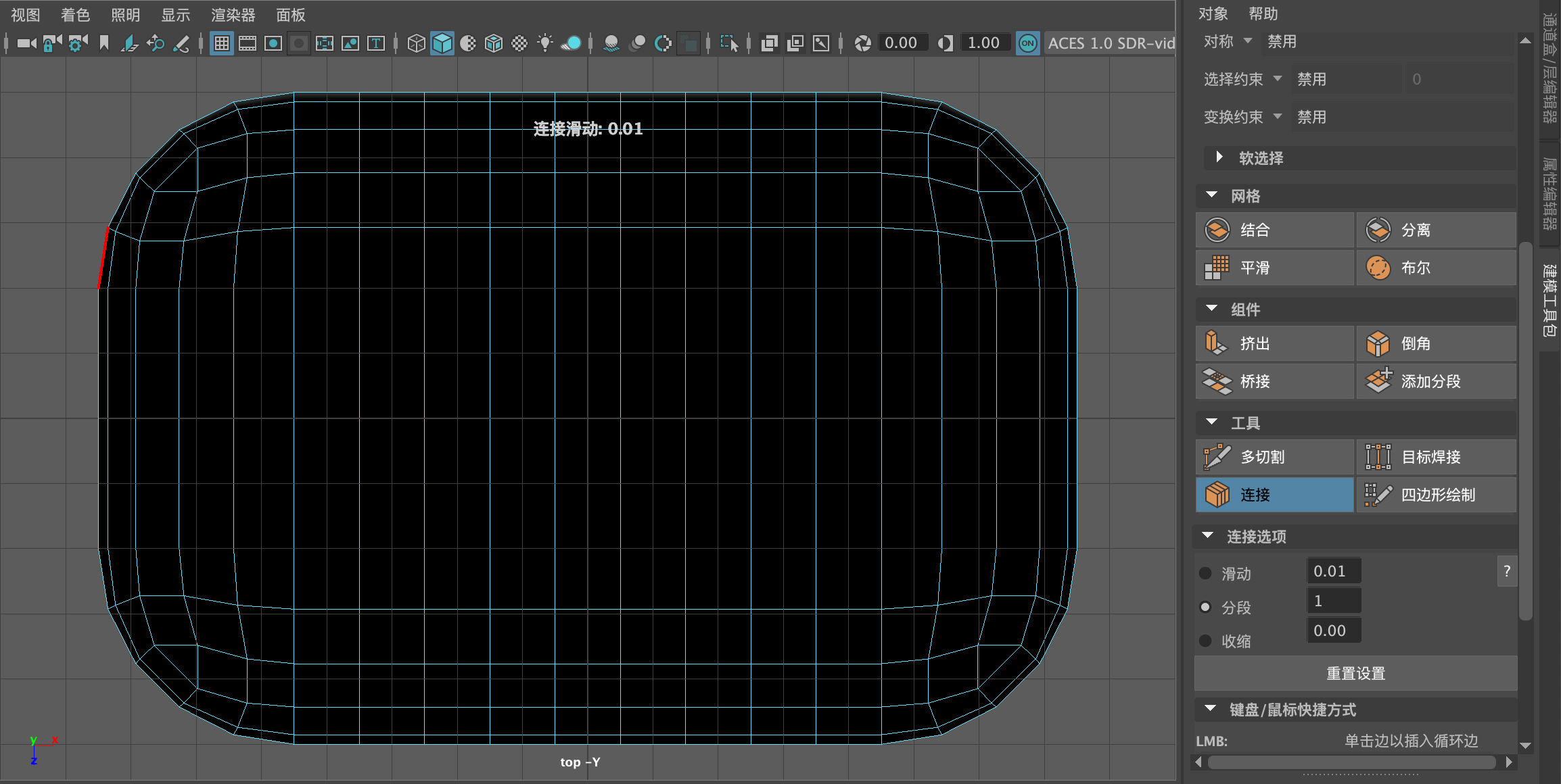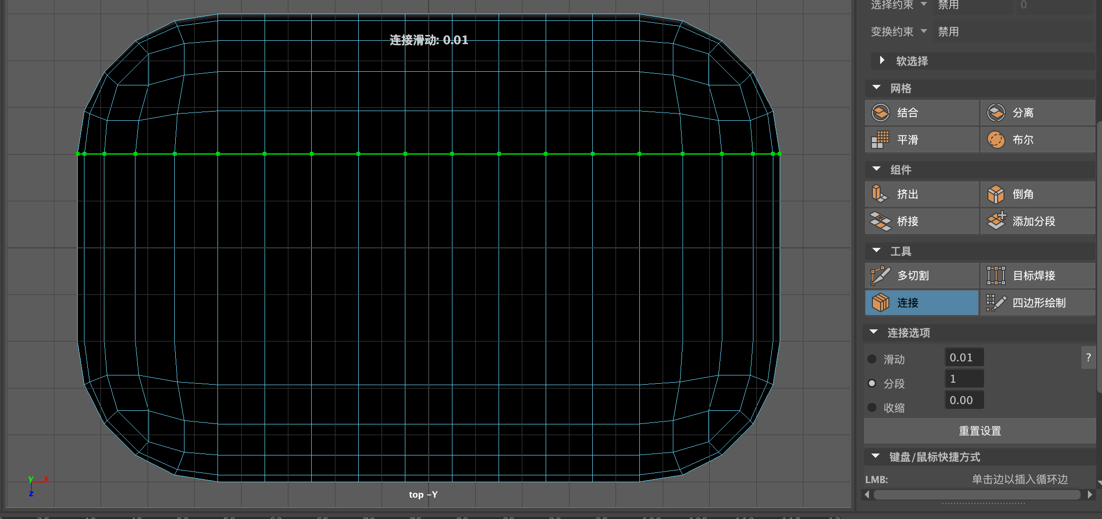 先点连接,滑动改为0.1,分段改为0.01,然后选中红色的短边