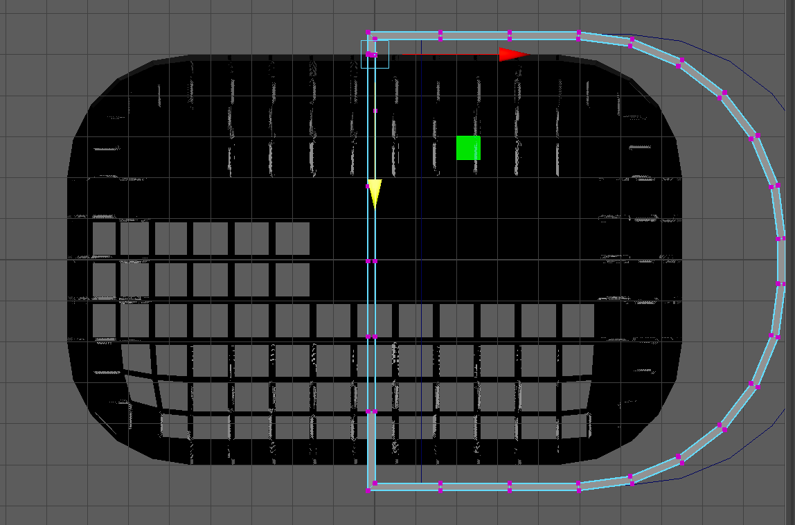 (17)选择图3-96所示的边,单击菜单栏"修改/转化/多边形边到曲线"后面的方形按钮,如图3-97所示。