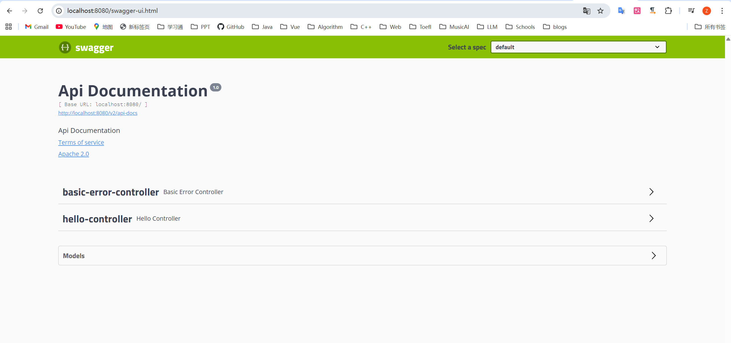 5、访问测试 :http://localhost:8080/swagger-ui.html ,可以看到swagger的界面;