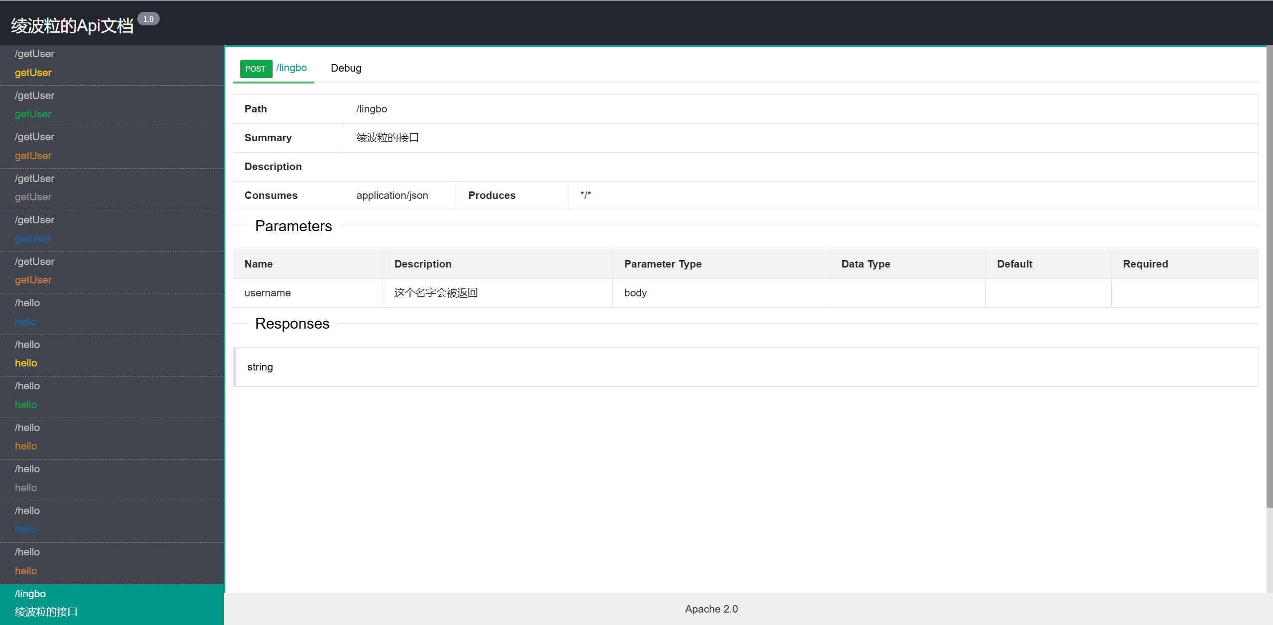 public String lingbo(@ApiParam("这个名字会被返回") String username) {