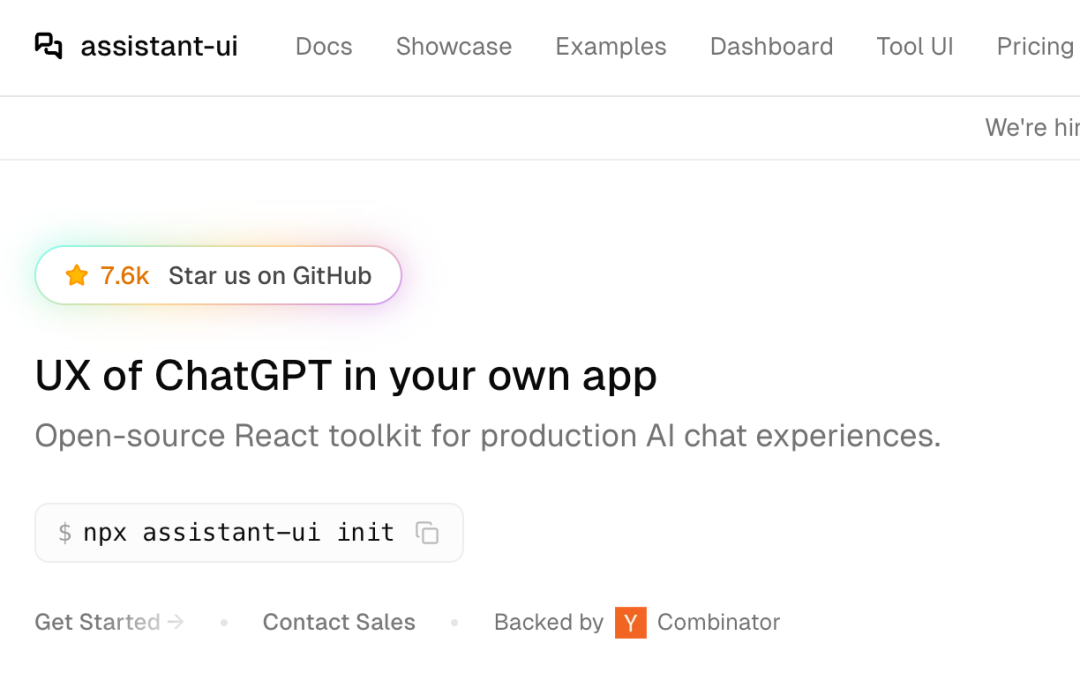 界面开发使用的是 assistant-ui 库。这是目前比较流行的开发 AI 助手的前端界面库。对于常用的功能都提供了内置的支持。