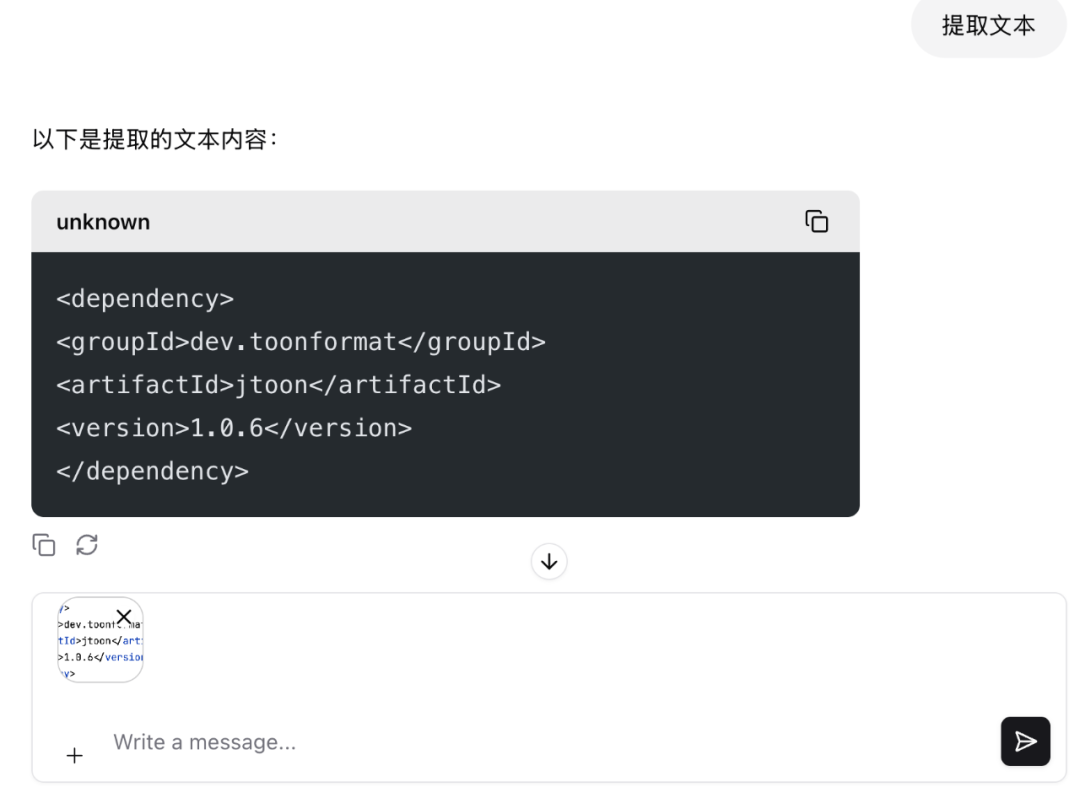 <dependency> <groupId>com.javaaidev.chatagentui</groupId> <artifactId>chat-agent-ui</artifactId> <version>${chat-agent-ui.version}</version></dependency>