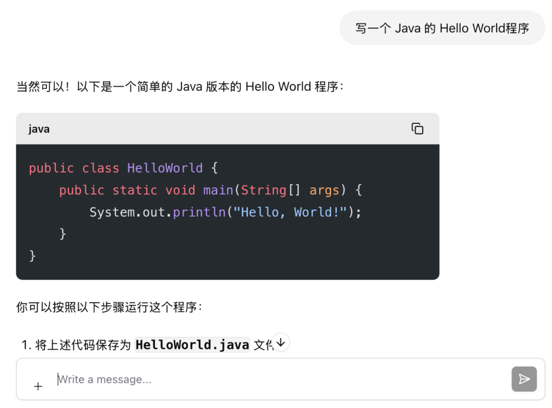 这是一个标准的 AI 助手界面,可以发送消息,查看结果。支持会话历史记录,可以创建多个会话。