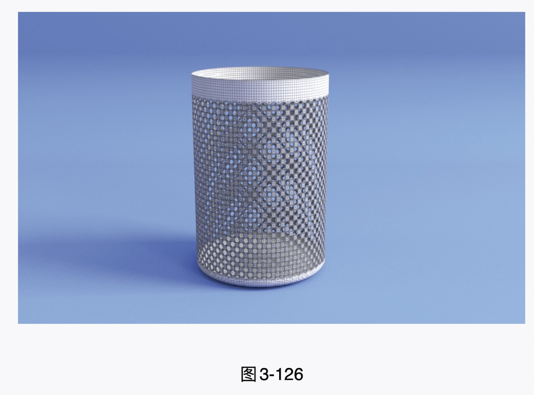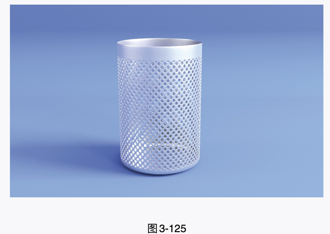 在本实例中,我们通过制作一个垃圾桶模型来学习多边形建模技术,本实例的最终渲染效果如图3-125所示,线框渲染效果如图3-126所示。