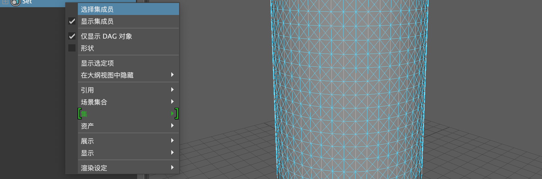 (7)创建完成后,我们可以在"大纲视图"面板中看到新创建出来的名称为Set的集