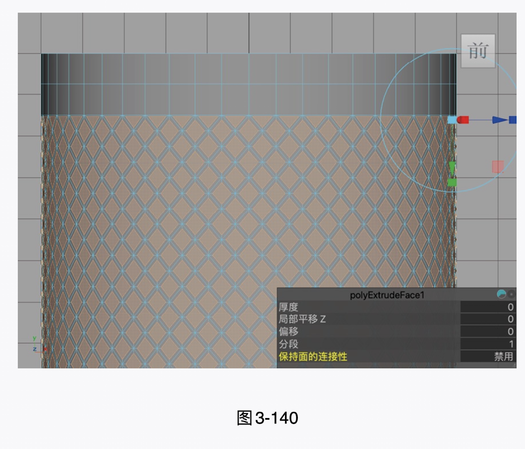 (11)选择图3-138所示的面,单击"多边形建模"工具架上的"挤出"图标,制作出图3-140所示的模型。