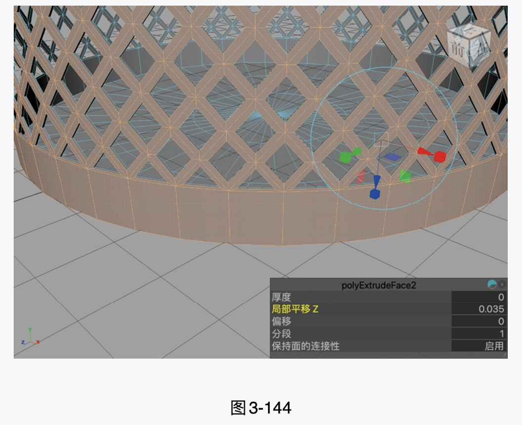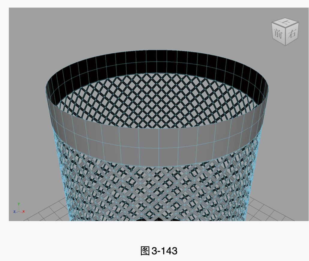 (14)选择模型上的所有面,再次使用"挤出"工具制作出垃圾桶的厚度,如图3-144所示。
