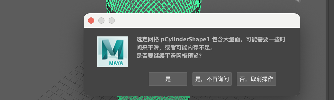 (16)按3键,对所选择的模型进行平滑处理,这时,系统会自动弹出对话框询问用户是否要继续平滑网格预览,单击"是"按钮