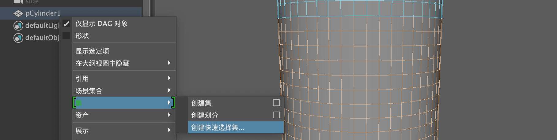 (5)在"大纲视图"面板中,单击鼠标右键并执行"集/创建快速选择集"命令