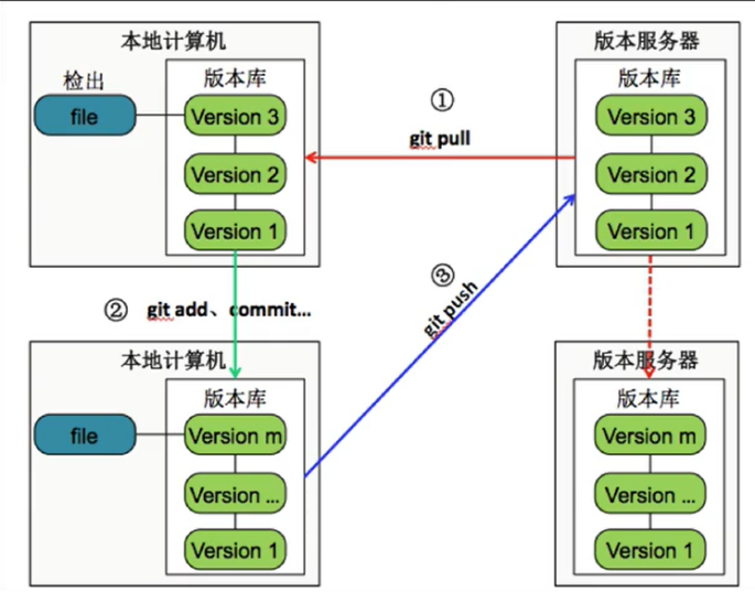 **版本库(.git目录):**是本地库的根目录中的一个隐藏目录.git,用于记录版本信息,Git进行版本控制所需要的文件,则都放在.git文件夹中。