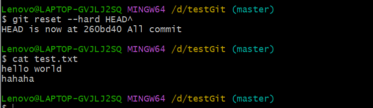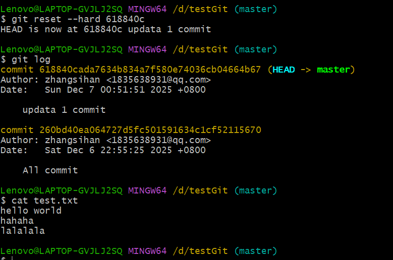回退撤销,现在想回退到最新的版本update 1 commit,可以通过版本号回退,使用命令方法如下:
