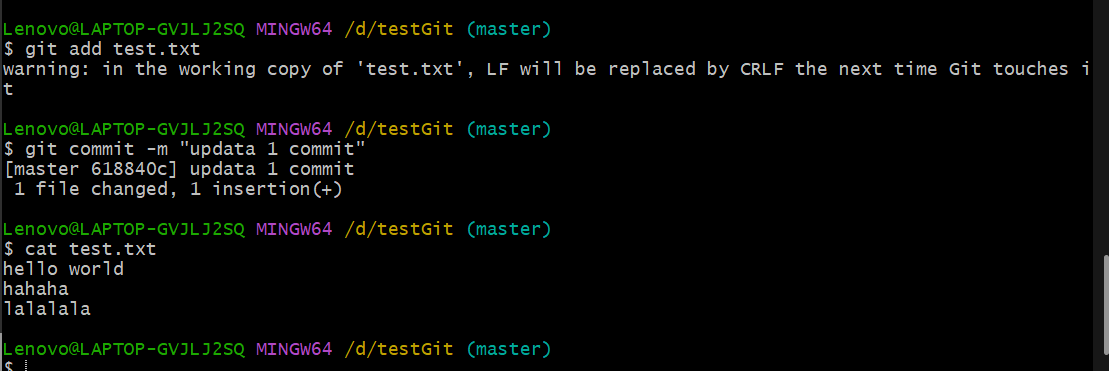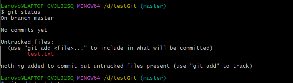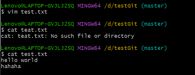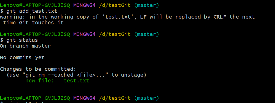 创建文件test.txt,此刻文件在工作区(WorkSpace)