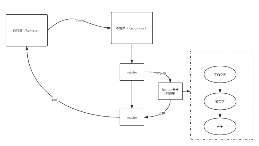 **远程仓库(Remote):**也叫作资源库,是远程机器上的代码库,用于做不同版本库文件交换更新。如Gitlab,GitHub,gitee。