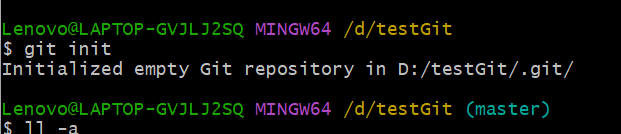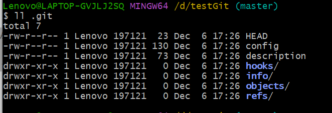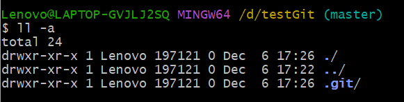 这时候当前testgit目录下会多了一个.git的目录,这个目录是Git来跟踪管理版本的,没事千万不要手动乱改这个目录里面的文件,否则,会把git仓库给破坏了。