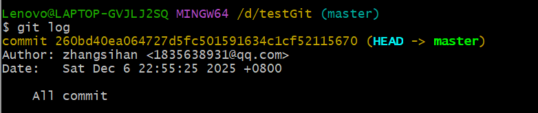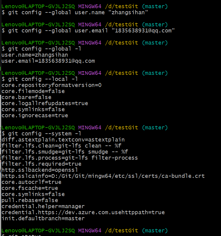 仓库级别 local 【优先级最高】git 仓库级别对应的配置文件是当前仓库下的.git/config