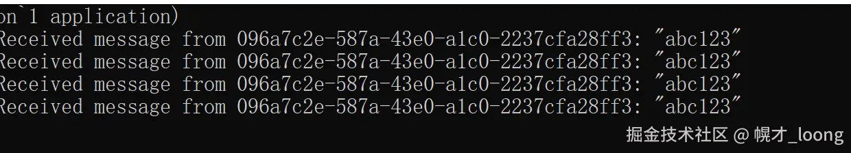 Console.WriteLine($"Received message from {connectionId}: {message}");