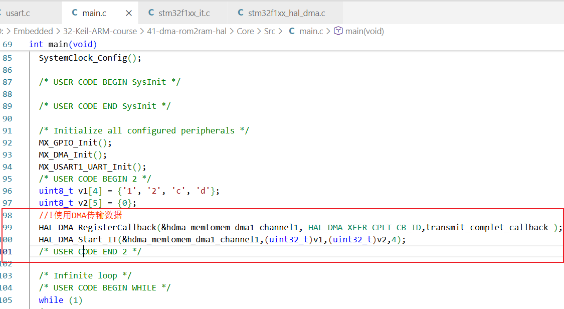 Dri_DMA_Transmit((uint32_t)v1, (uint32_t)v2, 4);
