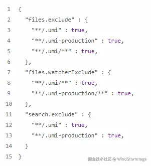 同时在 .vscode 的 settings.json 中也要添加对.umi的忽略: