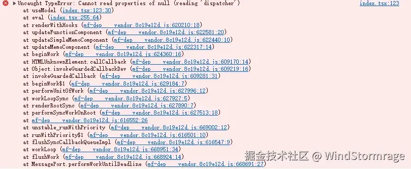 - 根据报错信息,定位到报错发生在 useModel 调用处