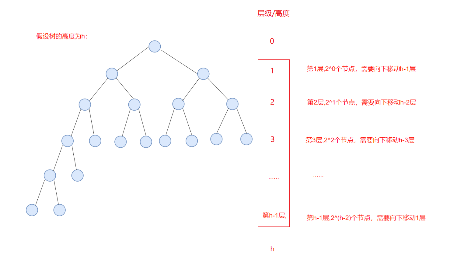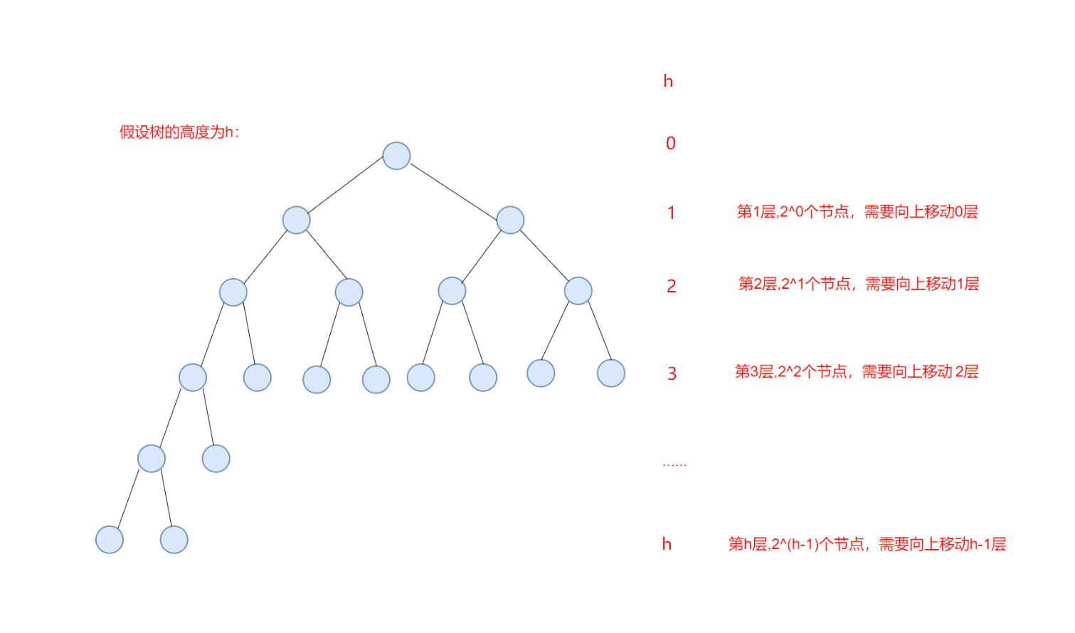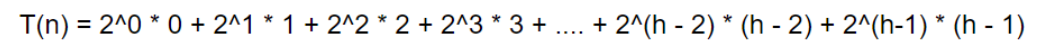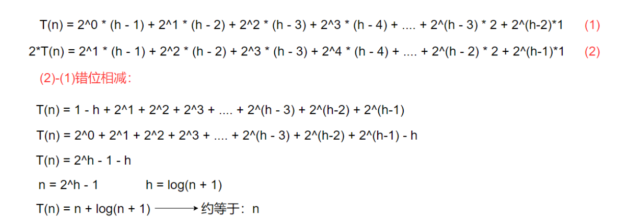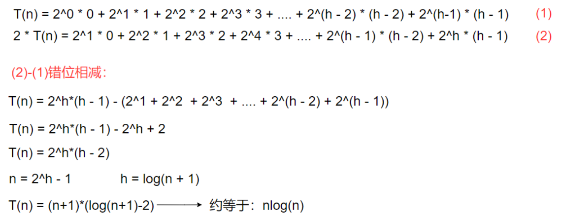 总次数:是高度为 1 到 h -1所有节点的调整次数之和,记为T(n):
