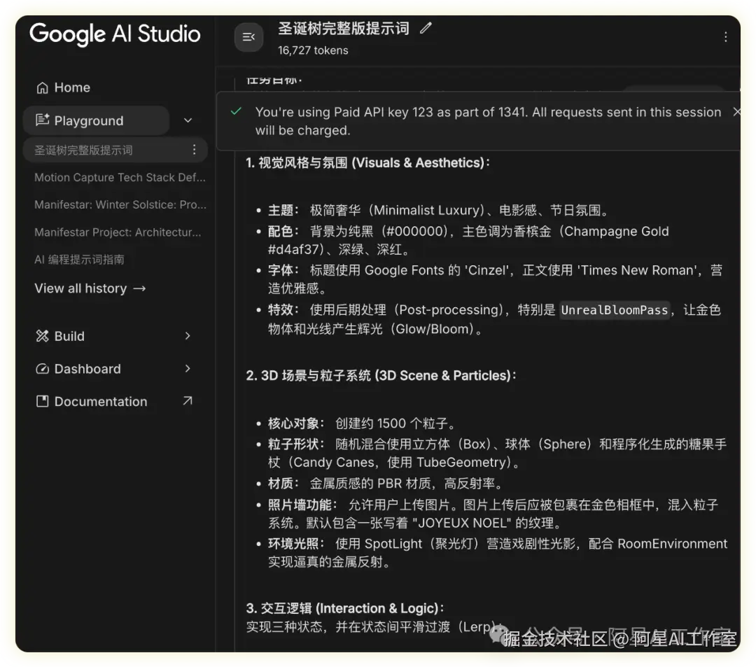 🚀 Prompt: " Christmas Tree" WebGL 互动项目角色设定:你是一位世界级的 Creative Technologist,精通 Three.js (WebGL)、GLSL 着色器逻辑以及 Google MediaPipe 计算机视觉集成。任务目标:请编写一个单文件 (Single-File) 的 HTML 项目,文件名为 Christmas Tree 代码。该项目必须包含完整的 HTML 结构、CSS 样式和基于 ES Module 的 JavaScript 代码。核心技术栈约束 (必须严格遵守):依赖管理: 使用 <script type="importmap"> 引入:three: https://cdn.jsdelivr.net/npm/three@0.160.0/build/three.module.jsthree/addons/: https://cdn.jsdelivr.net/npm/three@0.160.0/examples/jsm/@mediapipe/tasks-vision: https://cdn.jsdelivr.net/npm/@mediapipe/tasks-vision@0.10.3/+esm代码风格: 使用现代 ES6+ 语法,类 (Class) 结构管理粒子,异步/等待 (Async/Await) 处理加载。📝 详细开发规格说明书1. UI 设计与 CSS 样式 (Visual Identity)字体: 引入 Google Fonts 'Cinzel' (标题) 和 'Times New Roman' (正文)。配色: 背景 #000000。主色调:香槟金 #d4af37,奶油白 #fceea7。UI 组件:Loader: 黑色全屏遮罩,中间为 40px 的金色旋转 Spinner (border-top: 1px solid #d4af37),下方文字 "LOADING HOLIDAY MAGIC"。初始化完成后淡出。标题: 顶部居中 <h1> "Merry Christmas",字号 56px,使用 CSS linear-gradient (白到金) 实现文字渐变色,并加辉光阴影。隐藏逻辑: 定义 CSS 类............