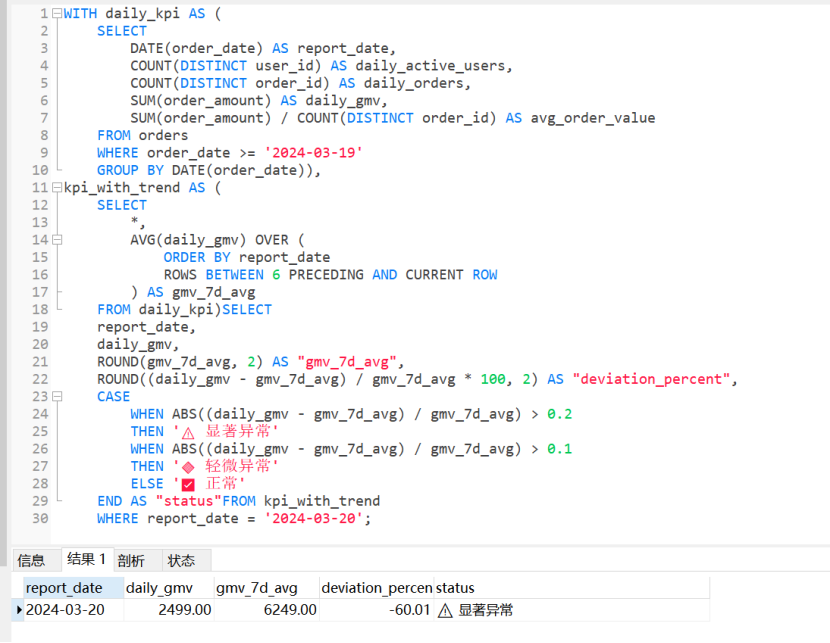 WHEN ABS((daily_gmv - gmv_7d_avg) / gmv_7d_avg) > 0.2