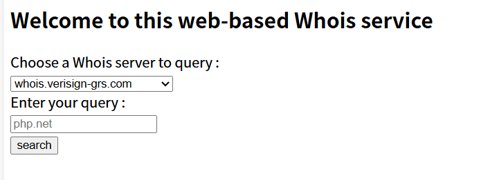 $output = shell_exec("/usr/bin/whois -h ${host} ${query}");