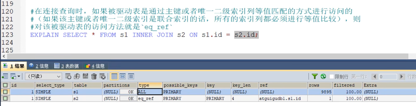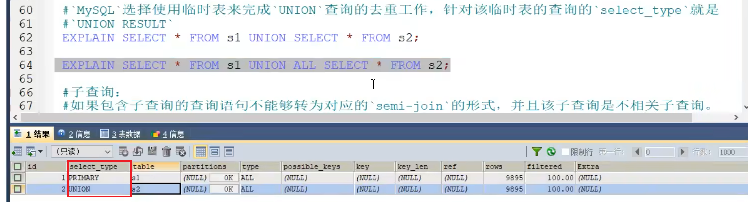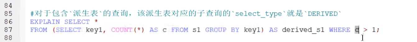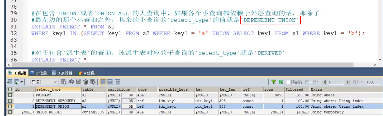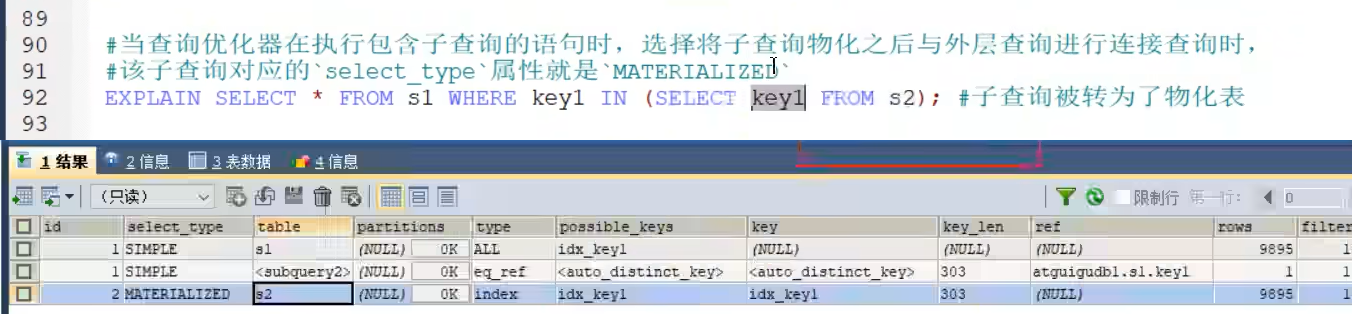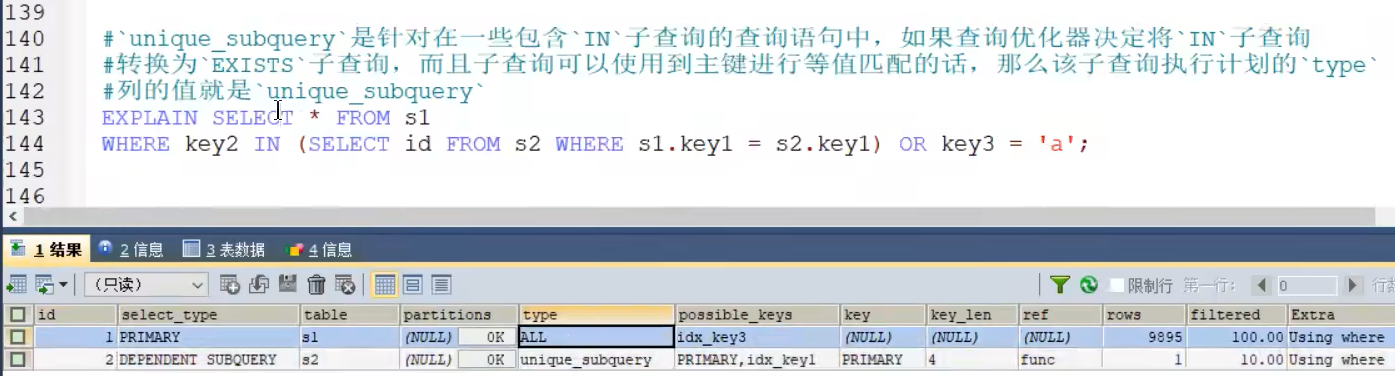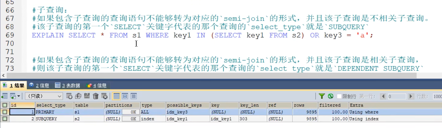 - 在外层的是PRIMARY,在内层的子查询是SUBQUERY