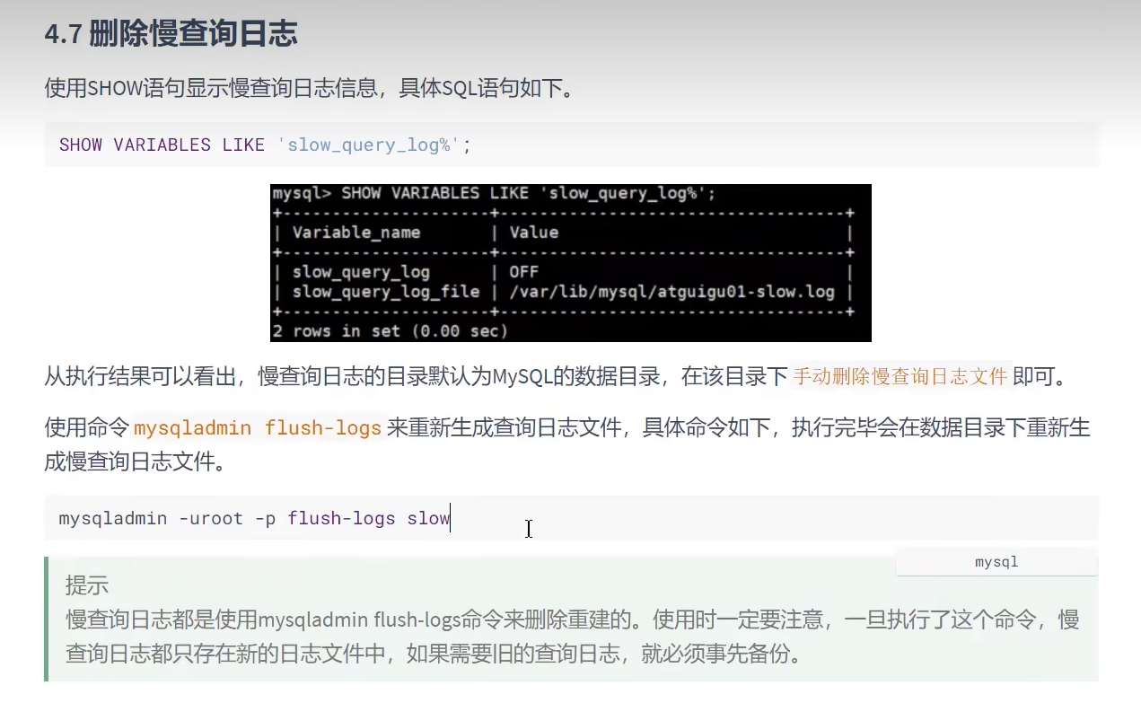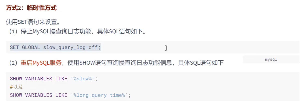 - 默认慢查询日志不开启,手动开启慢查询日志
