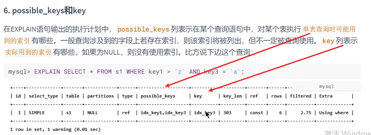 6.possible_key和key,可能用到的索引和实际用到的索引