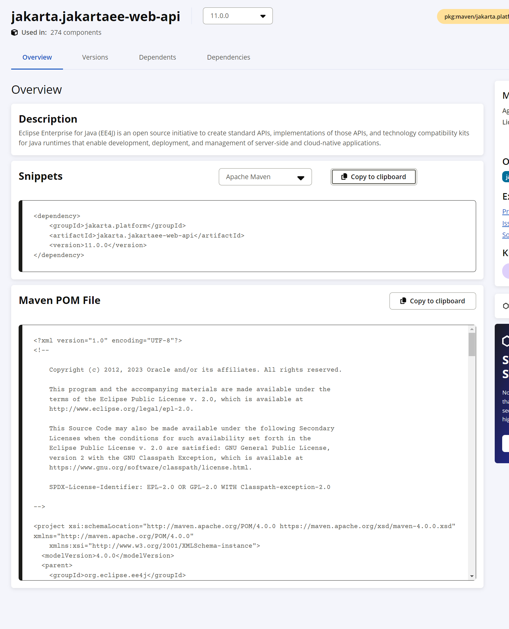 Snippets部分是一个API接口聚合包 ,使用它就相当于导入Jakarta EE Web Profile(对应版本) 规范定义的所有核心 API 接口, 其中还提供了一些其他的软件项目构建工具对应的API聚合预制配置片段