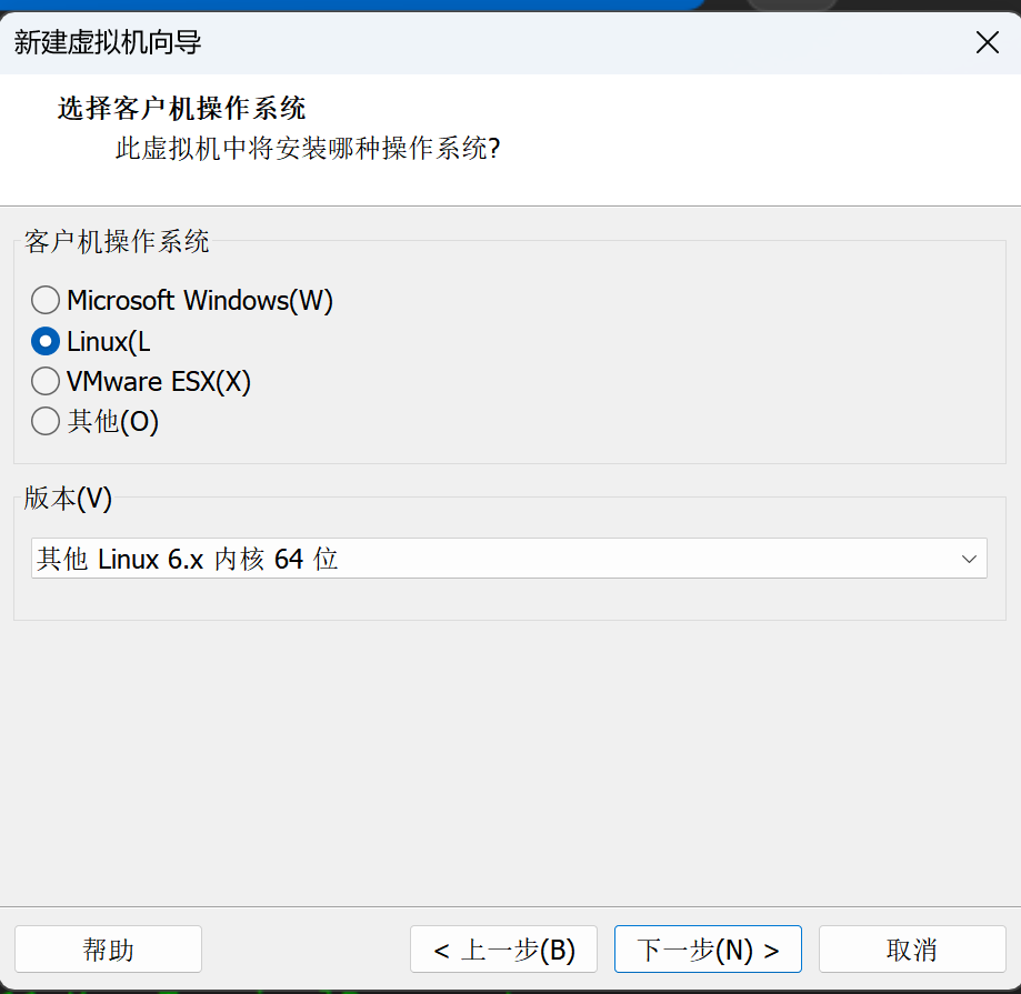 在新建虚拟机的时候选择自定义,操作系统和版本需要选择正确(统信 UOS 是 Linux 系统,最优选择是「客户机操作系统 → Linux(L) + 版本 → Linux 64 位(或 Debian 对应版本)」,能最大化兼容性与性能~)