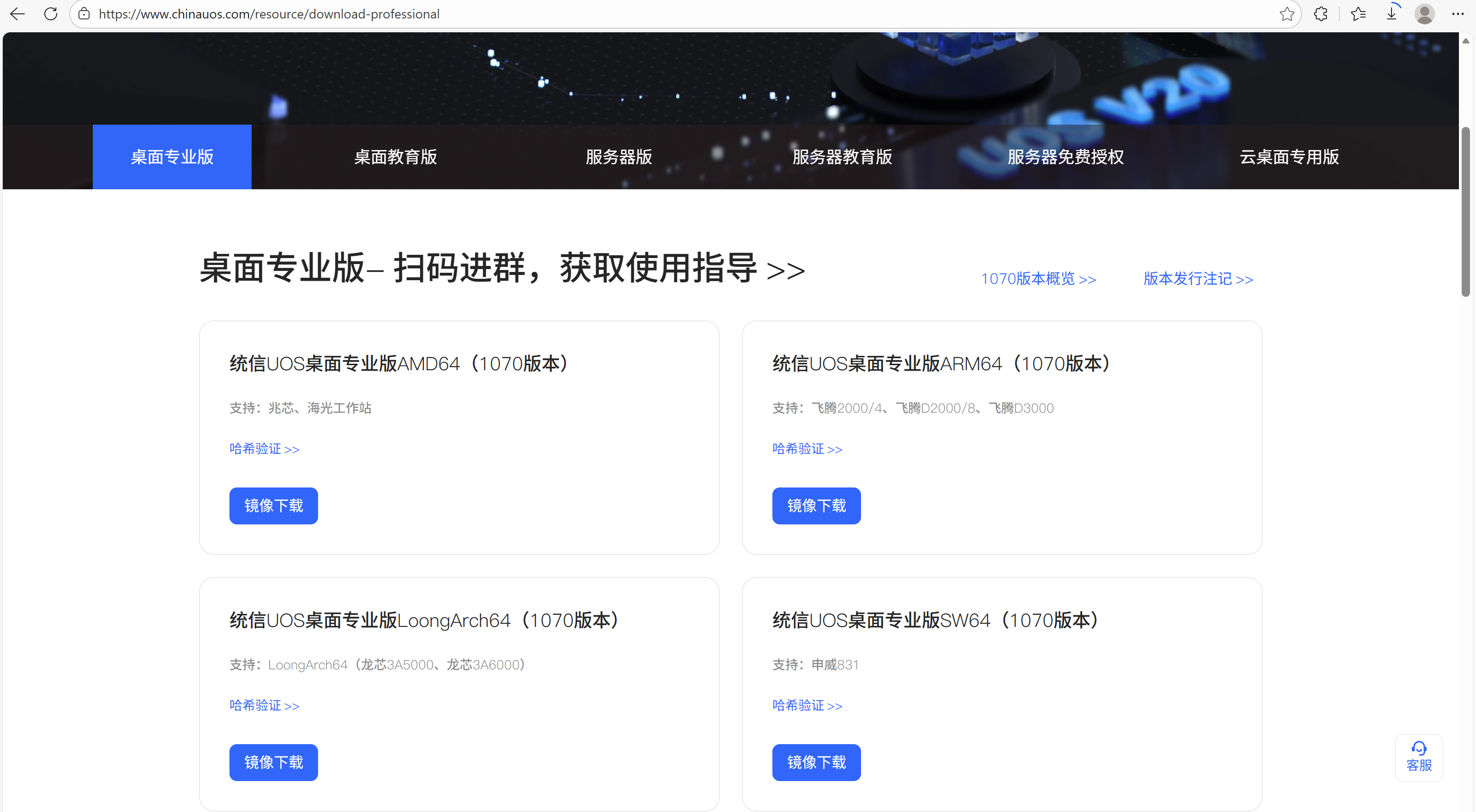 我这里下载的是统信UOS桌面专业版AMD64(1070版本)