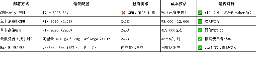 四、硬件成本估算(以运行7B模型为例)