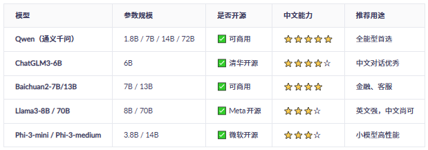 二、推荐的开源大模型(适合中文场景)