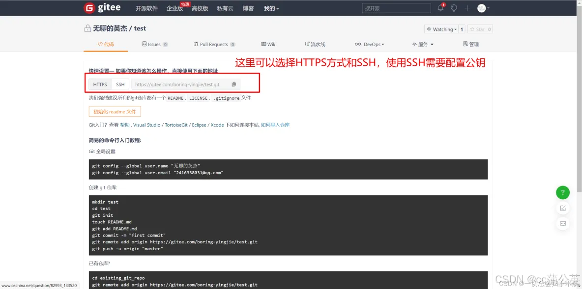 2. 仓库创建完成后可以看到仓库地址,如下图所示: