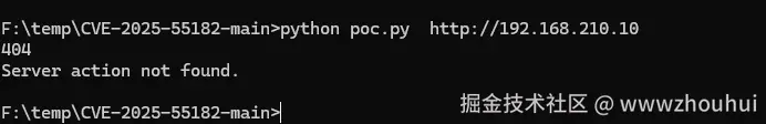 出现404了。这个测试方法我是绕过公司网络安全防护WAF验证的。这POC 没有返回信息,说明安全漏洞已经修复没有出现反弹的序列化漏洞了。
