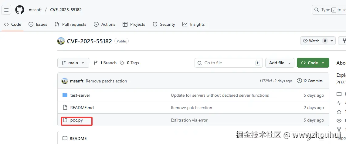 我们这里在github搜索CVE-2025-55182 搜到这个开源项目 把这个代码下载到本地