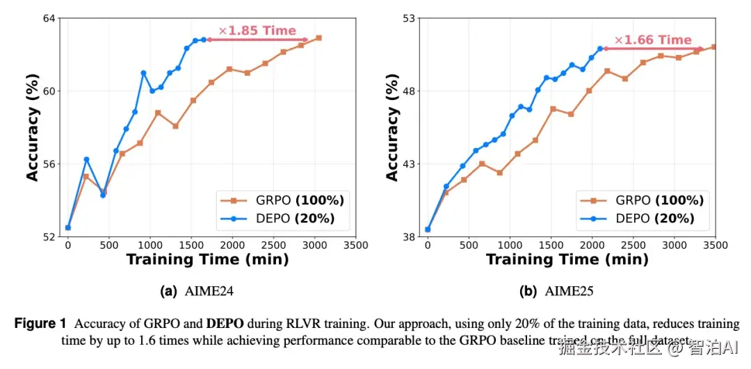 该方法仅需20%数据即可达到全量训练性能,同时实现训练耗时降低40%、rollout数量减少60%的优化效果。