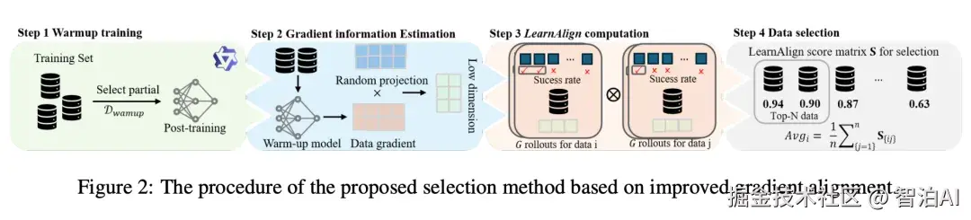 LearnAlign分数:综合数据可学性与梯度对齐结果,生成该分数以量化数据点间的相似性及学习价值。