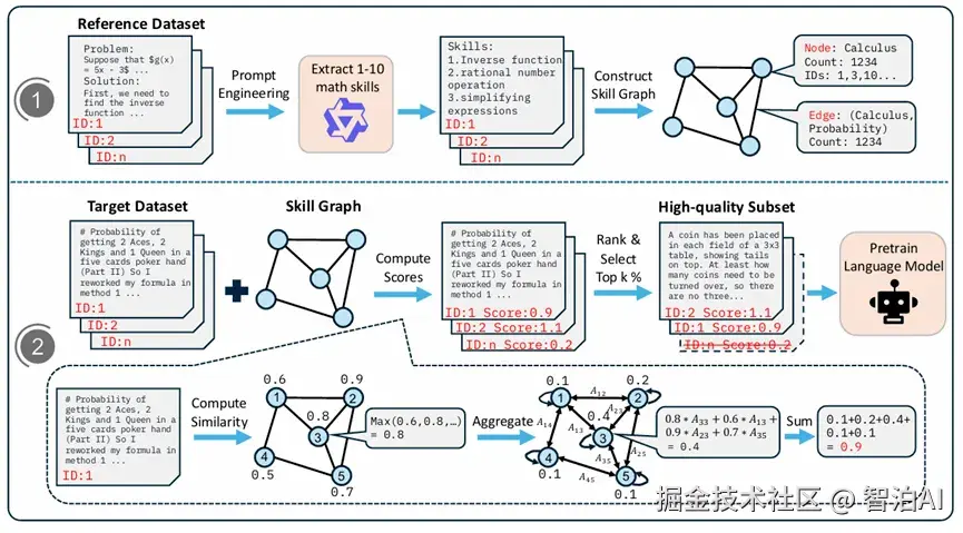 为此,MASS 创新性地引入"技能图谱"(skill graph)框架,通过可视化数学能力间的拓扑关系实现数据价值量化评估。