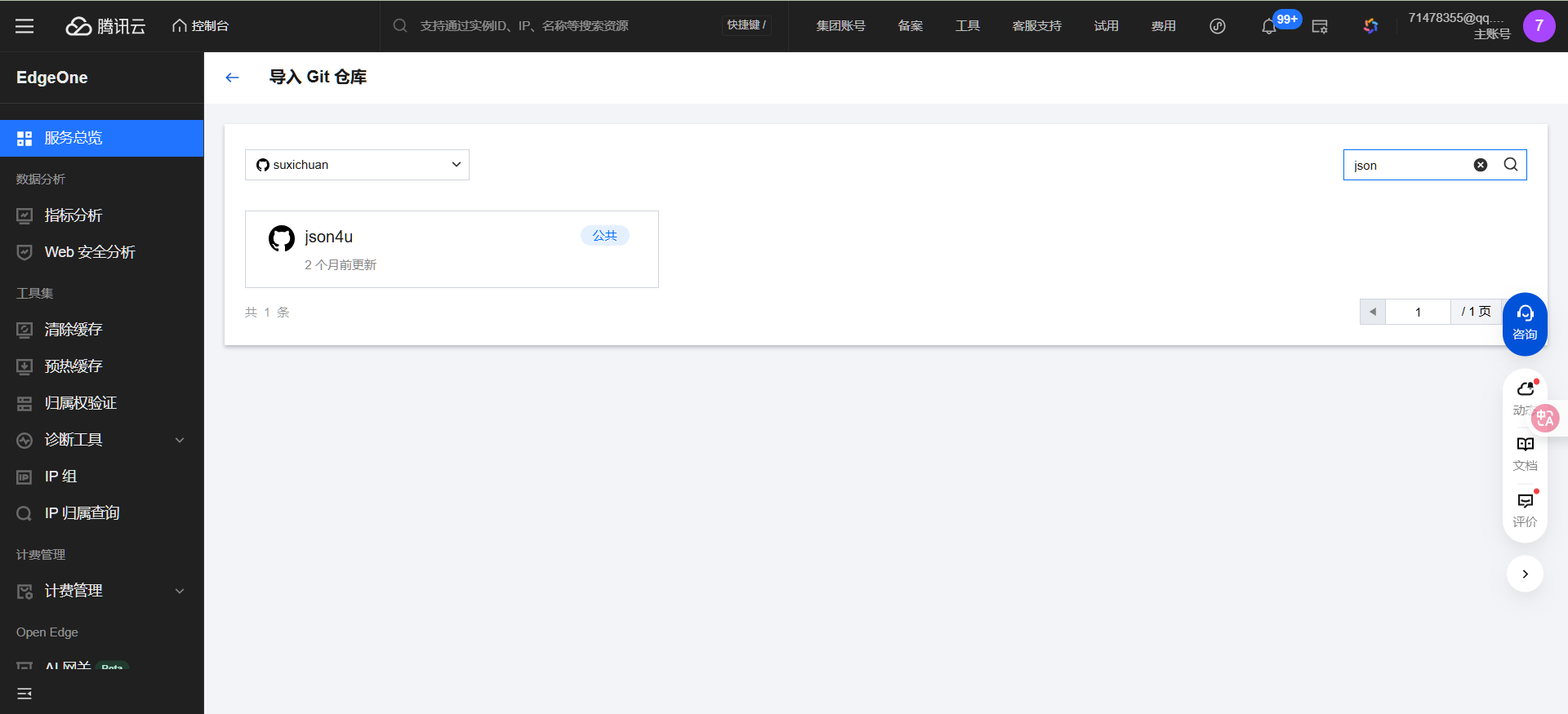 1、首先在fork源码到自己的GitHub仓库,然后在EdgeOne Pages界面创建项目,选择【导入GitHub仓库】
