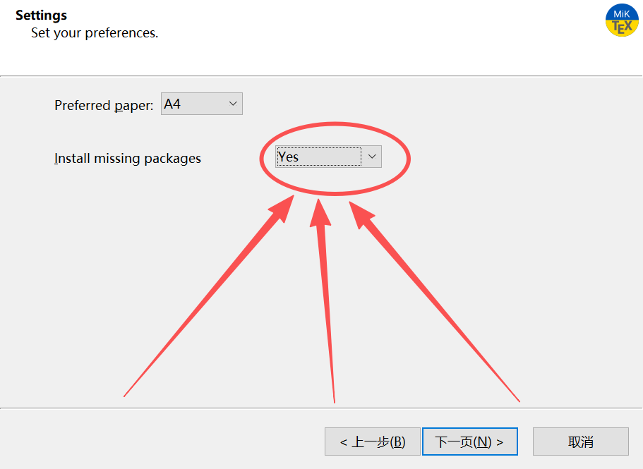 请一定选择 Yes,否则你会在之后被宏包报错折磨。