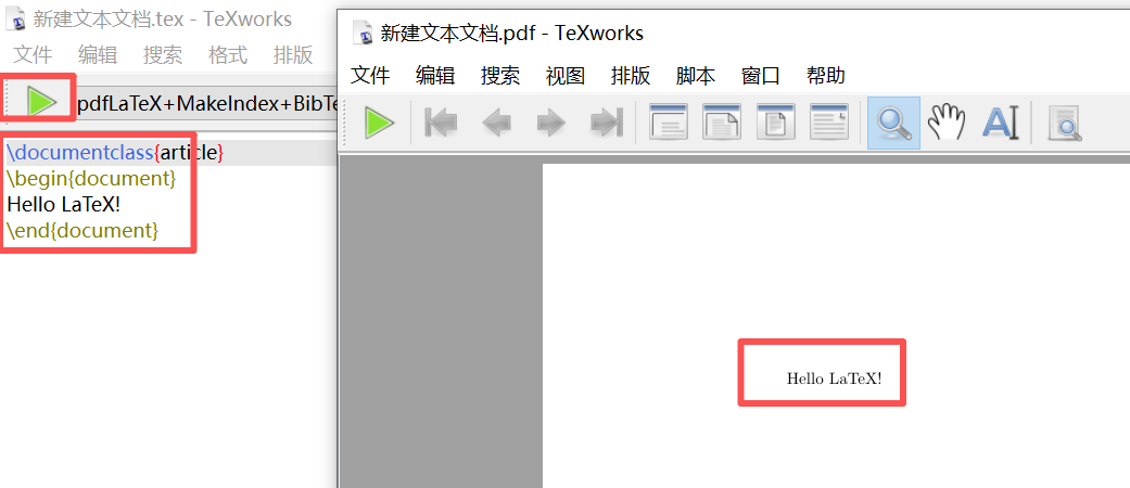 用 MiKTeX 自带的 TeXworks 打开 → 点击绿色编译按钮(PDFLaTeX)。
