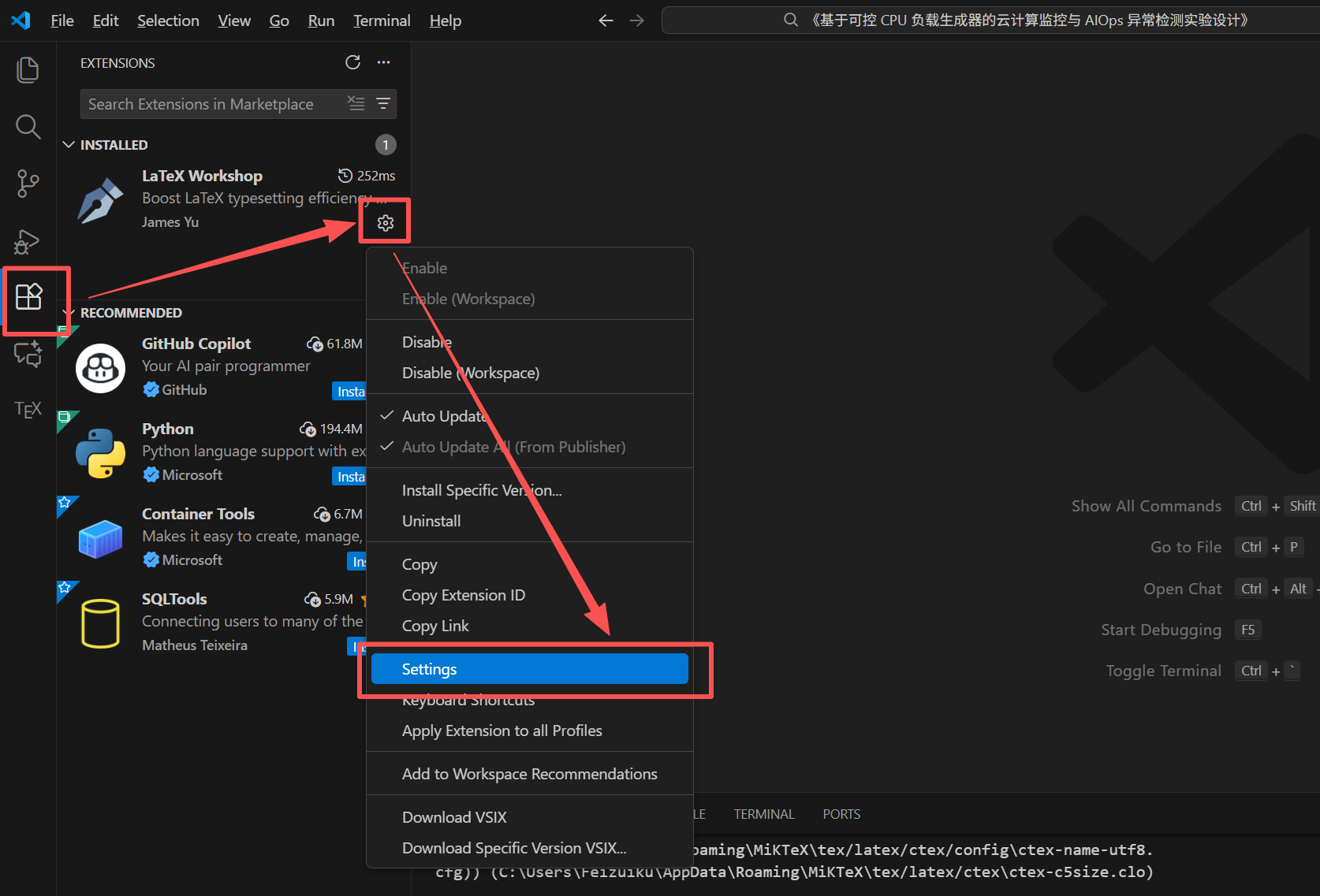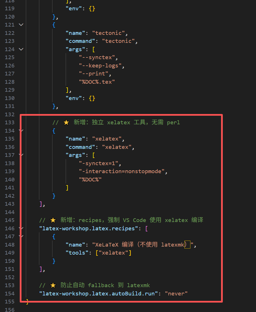 VS Code 默认会自动调用 MiKTeX,但我们建议设定一个 更稳定的编译链:XeLaTeX(支持中文)。