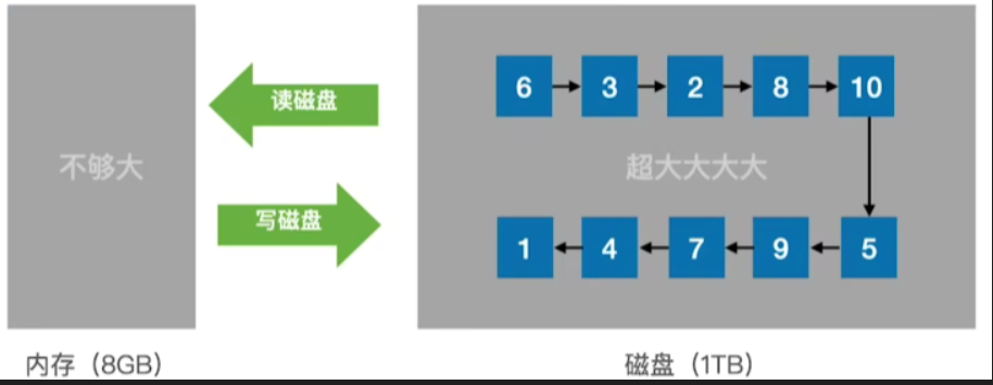- 关注如何使算法时、空复杂度更低,还要关注如何使读/写磁盘次数更少